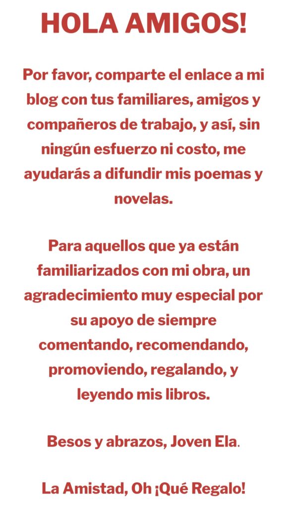 Tu apoyo es obviamente una de mis expectativas principales, pero igualmente importante es mi deseo de que disfrutes al leer mis poemas y novelas pues logres identificarte y conectarte con las emociones que los inspiraron.