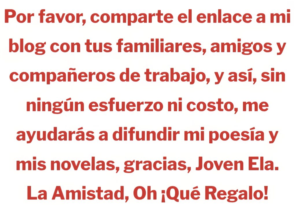 Tu apoyo es obviamente una de mis expectativas principales, pero igualmente importante es mi deseo de que disfrutes al leer mis poemas y novelas, pues logres identificarte y conectarte con las emociones que los inspiraron.
